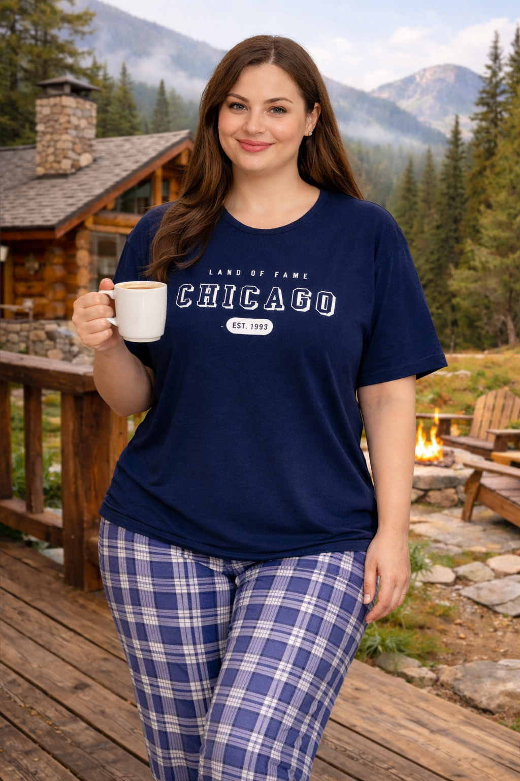 Alt ve üst set halinde gönderilen modern tasarım Büyük Beden Pijama Takımı.