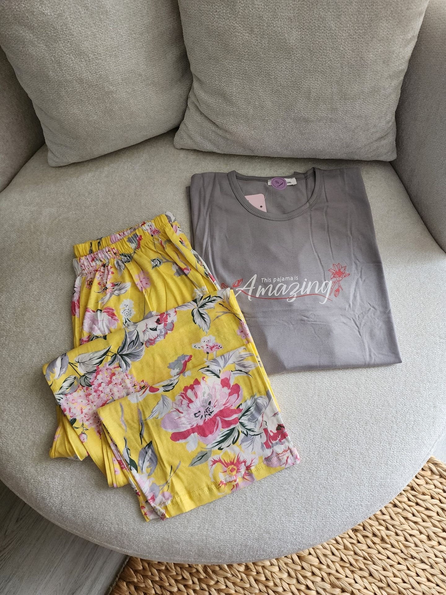 Alt ve üst set halinde gönderilen modern tasarım Büyük Beden Pijama Takımı.