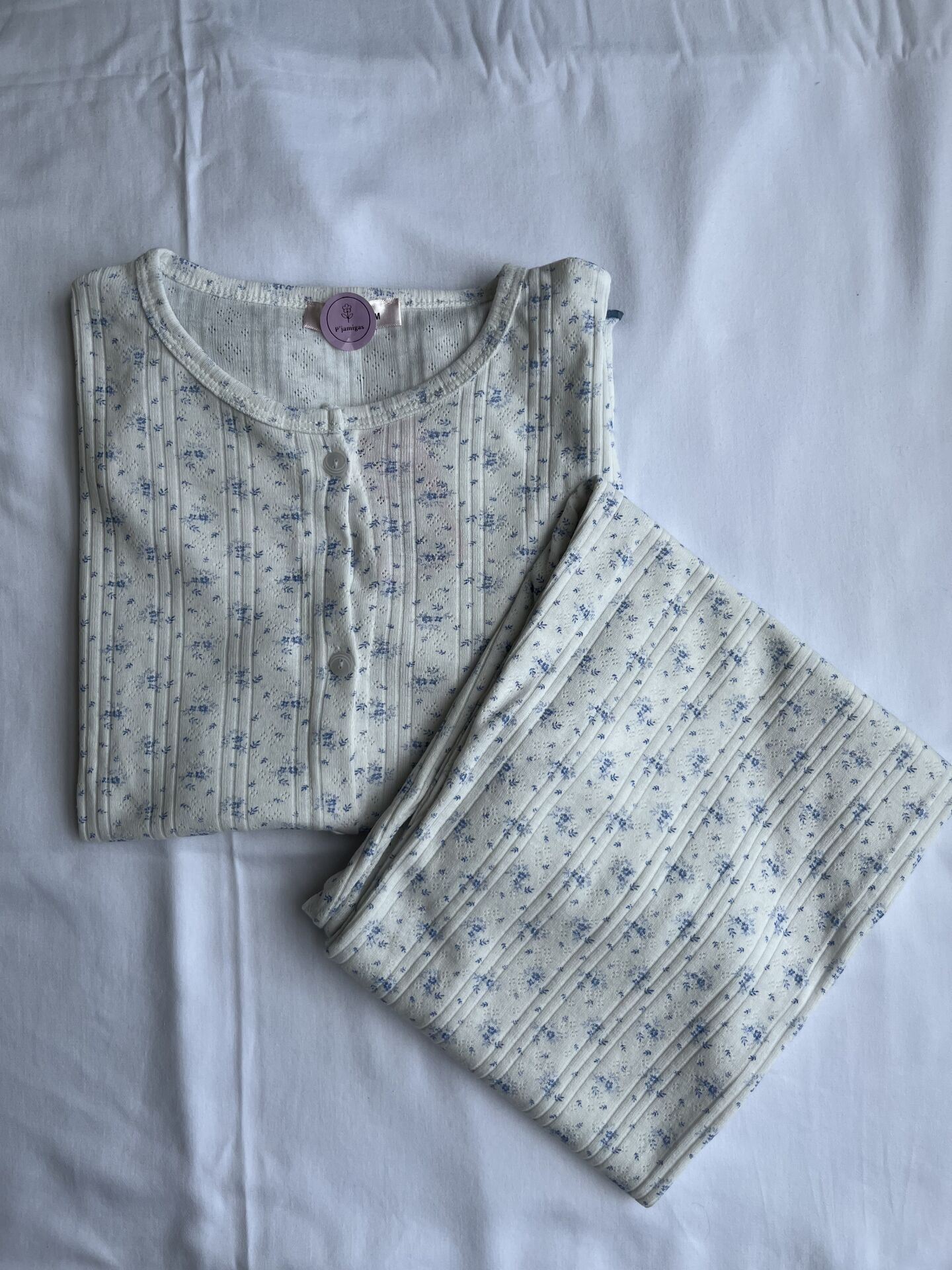 Ditsy White Pointel Kadın Pijama Takımı - Uzun Kollu