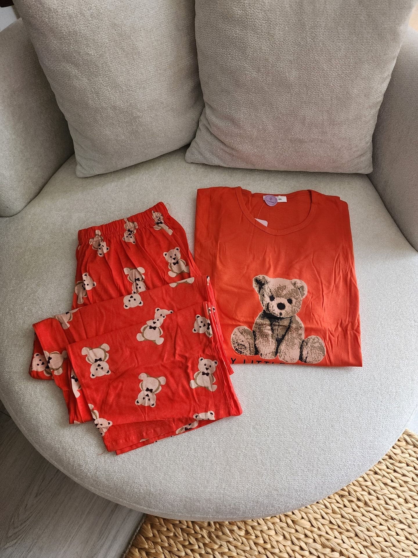 Orange Bear Penye Büyük Beden Pijama Takımı - Kısa Kollu