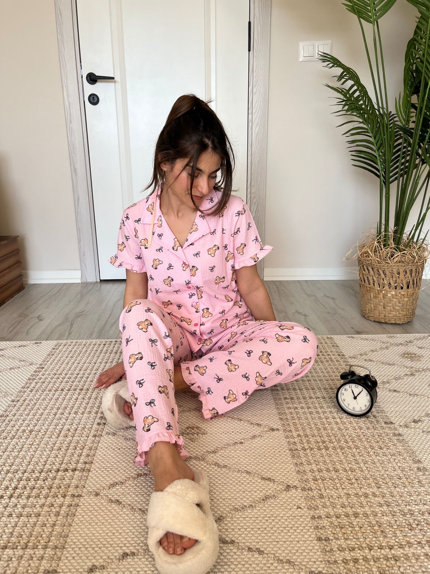 Pijamigas Pembe Ayıcık Bürümcük Kadın Pijama Takımı, yumuşak dokulu premium kumaşıyla günlük kullanımda maksimum rahatlık sunar. Esnek ve nefes alabilen özel bürümcük dokuma yapısına sahip bu Kadın Pijama Takımı, evde geçirdiğiniz her anı daha konforlu ve keyifli hale getirir. Modern ve şık kalıbıyla dikkat çeken bu Kadın Pijama Takımı, hem rahat bir uyku deneyimi hem de gün boyu şık bir ev giyimi sağlar. Yumuşacık dokusuyla teninizde pürüzsüz bir his bırakan Kadın Pijama Takımı, sevimli ayıcık desenlerini ve bürümcük kumaşın kendine has dokusunu arayan kadınlar için tasarlandı.